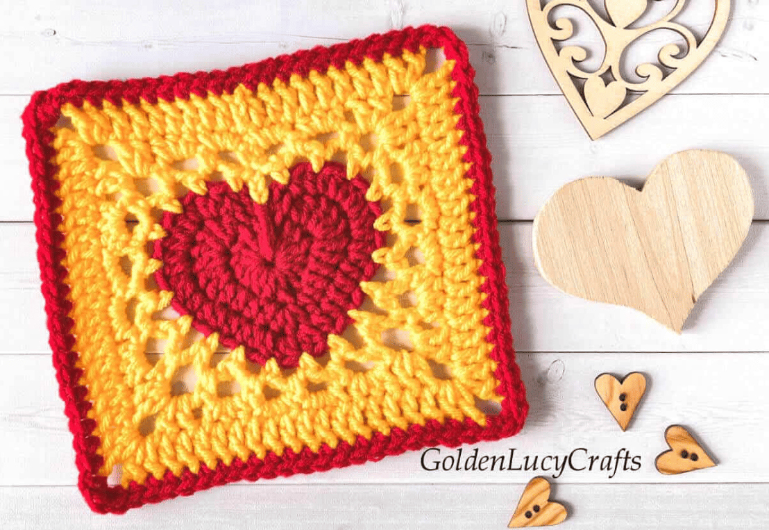 This heart-centered granny square is a charming way to add personality to blankets, cushions, or bags. The design blends classic granny structure with a bold heart motif, making it ideal for gifts, themed projects, or scrap yarn colour play. Check it out →