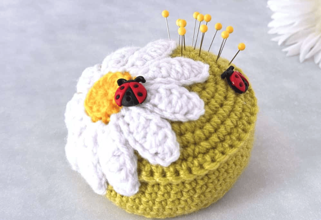 Turn your craft table into a little garden with this cheerful daisy pincushion. The bright petals and sunny center keep pins tidy while adding a pop of handmade charm to your workspace. Cute, practical, and a joy to make! Check it out →