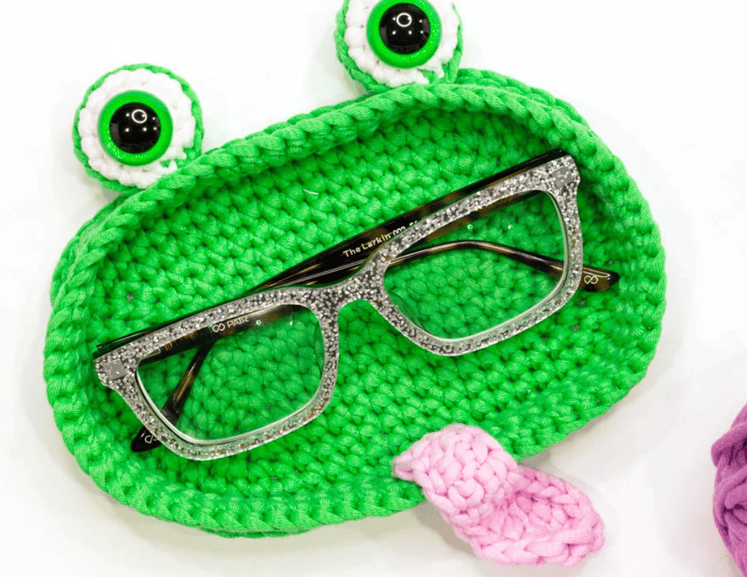 A quirky frog glasses holder, an easy intro to mosaic crochet, and cleaner finishes.