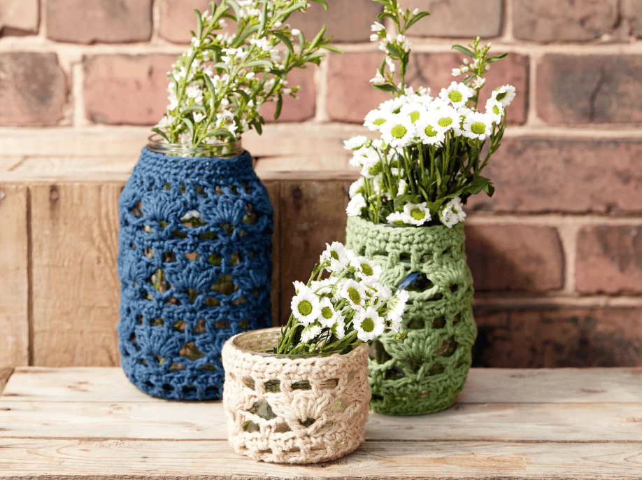 These quick crochet cozies turn plain jars into rustic-chic drink holders or storage containers. Fun to make, easy on scraps, and the perfect touch for picnics, parties, or everyday kitchen charm. Check it out →